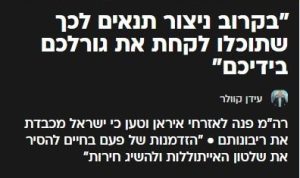 עד כה הם לא השתמשו בו כי הם מעדיפים שראש המכשלה קודם ישמיד את כל הגרעין, אחרי זה יחסל את כל הטילים, ואז יפיל את המשטר ורק אחרי כל זה המשטר שנפל יעשה קאמבק וישתמש בו. בינתיים מרגלים סודיים שתמונותיהם מופיעות בעיתונים המובילים ומי שממש רוצה דייט עם אחד החתיכים יכול לשלוח וואטסאפ למנהלת הטרלול, מחפשים בכל איראן את מלאי גז העצבים.