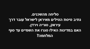 חסיד אומות איראן דואג לעם האיראני. מתי הוא יצור את התנאים האילו גם לאזרחי ישראל?