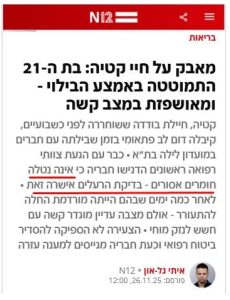 היא סיפרה שבזמן הקורונה, איימו עליה שאם היא לא תיקח רעל, אז יגרשו אותה מהישוב הקטן בו היא מתגוררת.