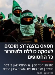 לפי הדיווחים חמאס השיב בחיוב להצעת העסקה שראש המכשלה "הנחיתי".