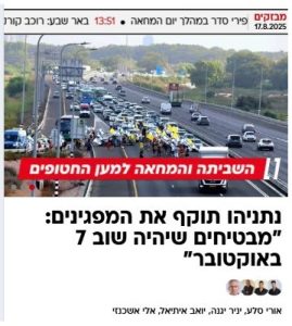 מתי כבר תקום ועדת חקירה חולנית שתכריז רשמית על המפגינים כגורמי הטבח, השארת החטופים בשבי ובאופן כללי לכל שואת 2023-2025?