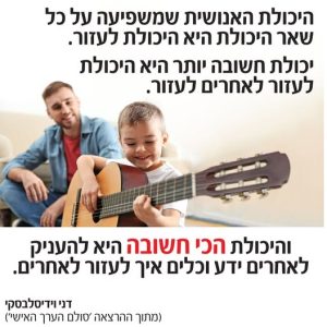 והיכולת הכי חשובה היא להעניק לאחרים ידע וכלים איך לעזור לאחרים.