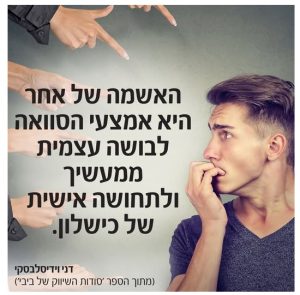 האשמה של אחר היא אמצעי רק אמצע הסוואה לבושה עצמית של המאשים,