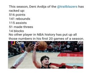 אבדיה התחיל את העונה עם שורת ביצועים מגוונים ומרשימים שלפי הדיווח אף שחקן בעולם, מעולם, לא עשה זאת לפניו.