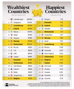 ככל שהמדינה גבוה יותר במיקום העושר – היא בעמדה נחותה יותר במדד האושר.