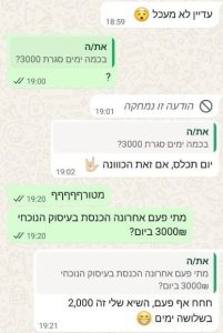 למטה – לקוח אחרי קבלת כלים ראשוניים הלקוח כבר הכניס פי 4 הכנסות מהשיא שלו לפני וידיס (3000 ביום במקום 2000 ב-3 ימים).