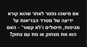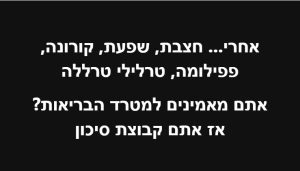 לצערנו בישראל, כמו בעולם, מאז 2021 החלה מגיפה חדשה. מגיפת המתמוטטים. אנשים בריאים – צעירים, מבוגרים, ילדים. כל הגילאים. פתאום מתמוטטים. כל אחד.ת מהם הוא עולם שלם. כל אחד.ת הוא פרח שאסור לקטוף.