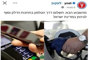 "החל מיום ראשון, בנק ישראל יחייב את כל תחנות הדלק לאפשר תשלום ע"י קירוב כרטיס האשראי, מכשיר הטלפון, טבעת, או שעון חכם. עקב כך, תופסק הפעלת המערכת הוותיקה שמאפשרת גיהוץ כרטיסי אשראי." מצד שני בתקנה 42א לתקנות רישוי עסקים כתוב: בתחנת תדלוק ציבורית – לא ישתמש אדם מחוץ לרכב בטלפון נייד או במכשיר קשר ולא יעשן".