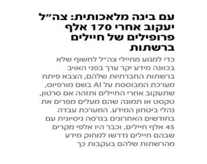 צה"ל מעכשיו עוקב רשמית אחרי כל החיילים. לכאורה זה מה שימנע מהאויב הממוטט, המפורז, המושמד, המנוצח באופן מוחלט מלבצע טבח 2. האם פוסטים של חיילים גרמו למחבלים לדעת איך להשבית את מטוסי חיל האוויר לשמונה שעות?