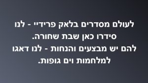 כל מי שחשש שאולי יהיה כאן שקט, שלווה ושלום, כל מי שלא יכול להעביר ימים בלי חרדות ולילות בלי אזעקות. חבר'ה יש בשורה נפלאה. המכשלה