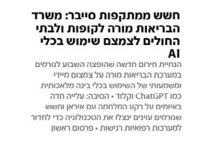 אחרי שדחפו את כולם לקומבינה המלאכותית. עכשיו יש תמרור אזהרה. דרך הקומבינה האוייבים שלנו (יענו איראן) יכולים לפרוץ למערכות רפואיות רגישות. אבל מי יפרוץ?