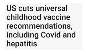 בטח שמעתם על זה בישראל. ערוצי החששות ואתרי החרדות בטוח עדכנו אתכם בהרחבה על כך מדיי יום בשבוע האחרון: ממשל טראמפ ביטל חיסולים רבים לילדים באמריקה. למה לפי דעתכם נשיא ארה"ב עוצר דקירות עם רעלים נגד תינוקות בזמן שבישראל מגיפת החיסולים רק מתרחבת בלי הפסקה? להלן אפשרויות לבחירה