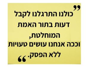 דעה לא שווה אמת. דעה של "מומחים" לא שווה אמת. דעה שנאמרת בצעקה לא שווה אמת. דעה שלילית לא שווה אמת. דעה היא רק…. דעה.