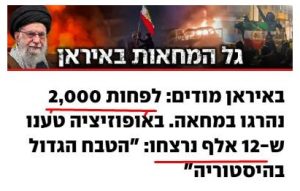 מה שאתם רואים בתקשורת זאת האמת המוחלטת! ולכל אתר וערוץ יש אמת משלו. ב-YNET או שמתו 2,000 אזרחים או שנרצחו 12,000. ב-וואלה נהרגו 3,000 מפגינים מתחילת המחאות. ב-N12 מתו 2,000 ביום אחד.